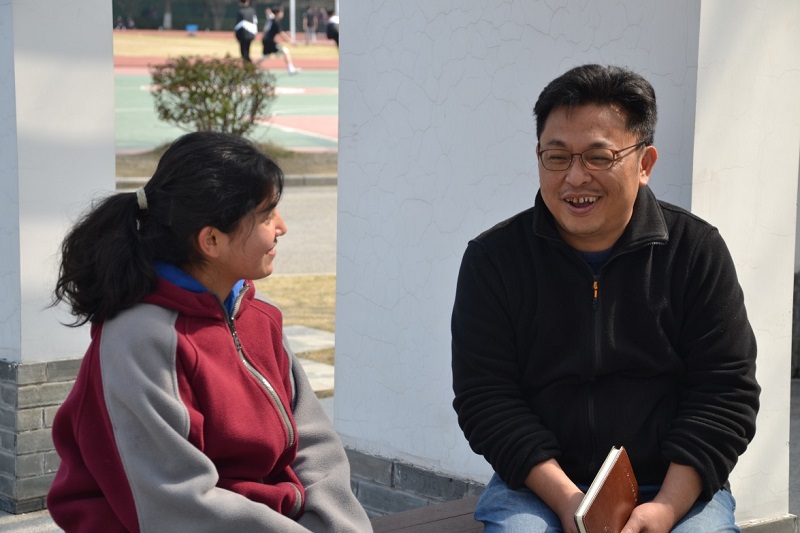 陈老师在新疆班教育教学岗位上工作已有21个年头。数不清多少次走入新疆班学生家庭,了解他们的成长环境,与家长们深入交流。为使学生们能安心在内地学习生活,陈老师如兄如父般关爱陪伴学生。二十年如一日,亲情浓浓。学生们都亲切地称他为“海峰哥”。